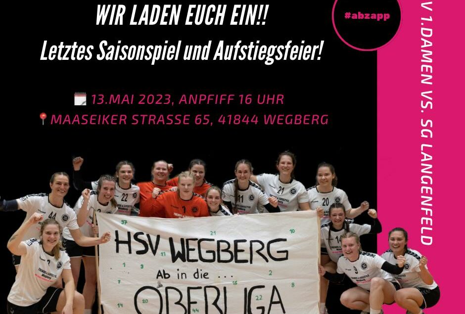 Um 16 Uhr ist Anpfiff in der Halle am Schwimmbad. Wir hoffen wieder auf eine tolle Kulisse wie beim letzten Heimspiel, um anschließend den Aufstieg mit den Fans / Freunden / Sponsoren und Unterstützern zu feiern! Für Grill und Getränke ist gesorgt. Kommt vorbei! Alle HSV-Mitglieder in Trikots!