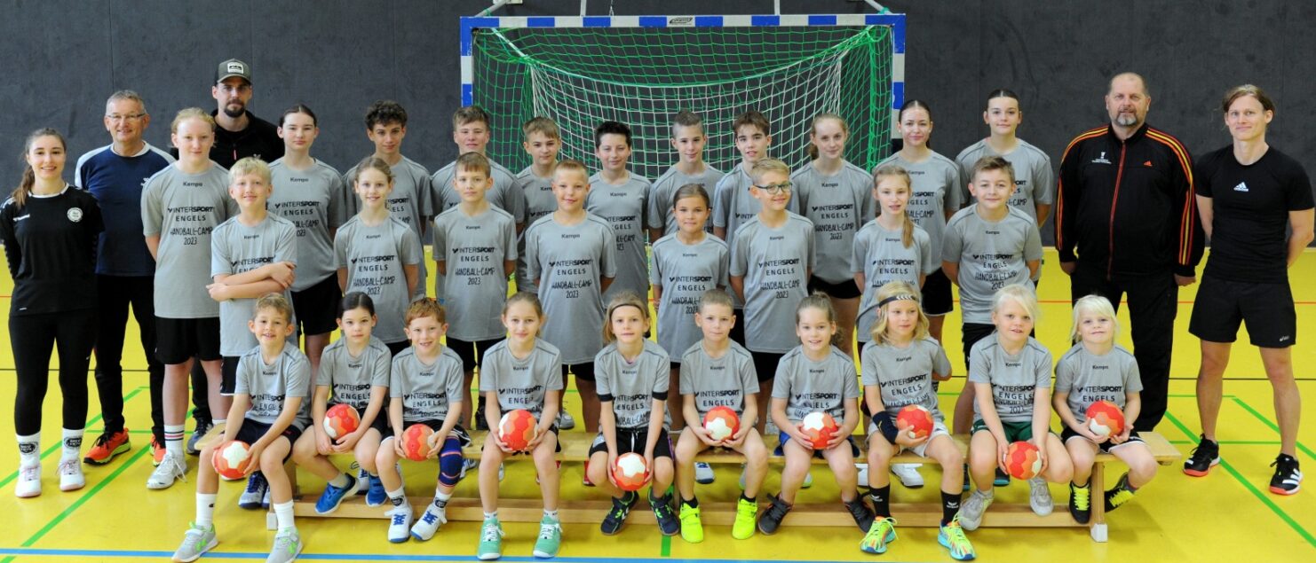In den Herbstferien fand das diesjährige Handballcamp statt: Drei anstrengende Tage liegen hinter den 30 Teilnehmer:innen, von denen fast alle in unserer F- bis C-Jugend spielen. Die drei externen Trainer Klaus Feldmann, Wolfgang Rommel und Udo Bräger hatten ein anspruchsvolles Training für alle Alterstufen konzipiert. Die Kids waren mit großem Spaß bei der Sache, und in den drei Tagen gab es einige handballerische Fortschritte zu verzeichnen. Genauso lehrreich war das professionelle Training für unsere ehrenamtlichen Trainer:innen, die zur Unterstützung vor Ort waren. Abgerundet wurde das Camp durch das wunderbare Essen von Catering Baumanns und einem T-Shirt gesponsort von Intersport Hückelhoven. Danke an alle Helfer:innen, das war ein voller Erfolg!