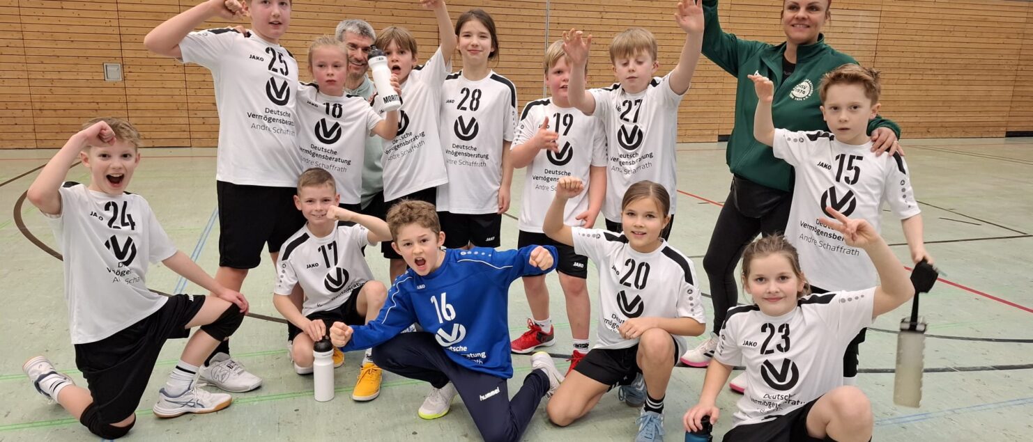 Die Zuschauer auf beiden Seiten wurden nun auch immer aufgeregter und praktisch jede gelungene Aktion in Angriff und Abwehr wurde laut bejubelt, wobei Bens Vater mit seinen motivierenden Zurufen unseren Kindern ganz besonders Mut machte, denn da ließ niemand den Kopf hängen, selbst im offenen Angriff überwand die Mannschaft, zumeist als Teamleistung, die gegnerische Abwehr und konnte schließlich mit Hilfe von Ben, Max, Moritz und Oskar eine komfortable 3-Tore-Führung bis Minute 40 ausbauen. Auch der letzte Freiwurf der Korschenbroicher ging nicht an unserem Torwart vorbei, so dass das Team des HSV Wegberg sich jubelnd beim Abschlusspfiff abklatschte und umarmte. Besonders torgefährlich zeigte sich Max in diesem Spiel, der 40 Minuten konzentriert durchspielte und dabei 15 Tore erzielte, eine unglaubliche Leistung. Der verdiente Endstand lag bei 26:29. Das habt ihr einfach toll gemacht, wir sind stolz!
